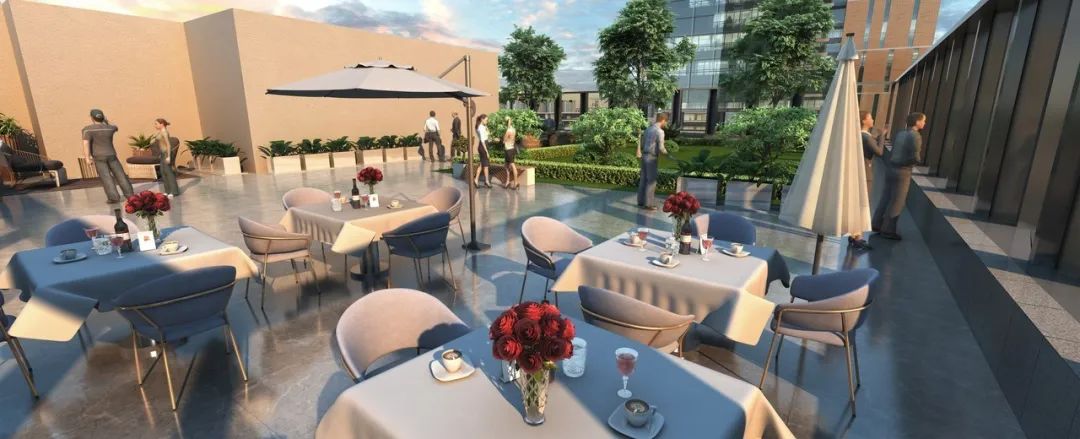 商旅间隙举步室外,由电梯直达屋顶花园,