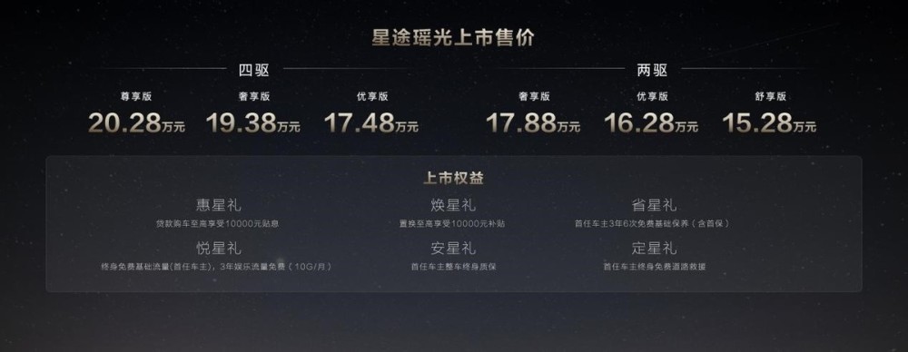 这么看来,星途瑶光名不虚传,用20万级的价格,展现出了40万级SUV应有的超高品质。这样的实力,即便放在竞争激烈的燃油SUV市场,也可以用“新晋卷王”来形容。这样的星途瑶光,对于追求高品质的轻中产来说,无疑是有着巨大的诱惑力。