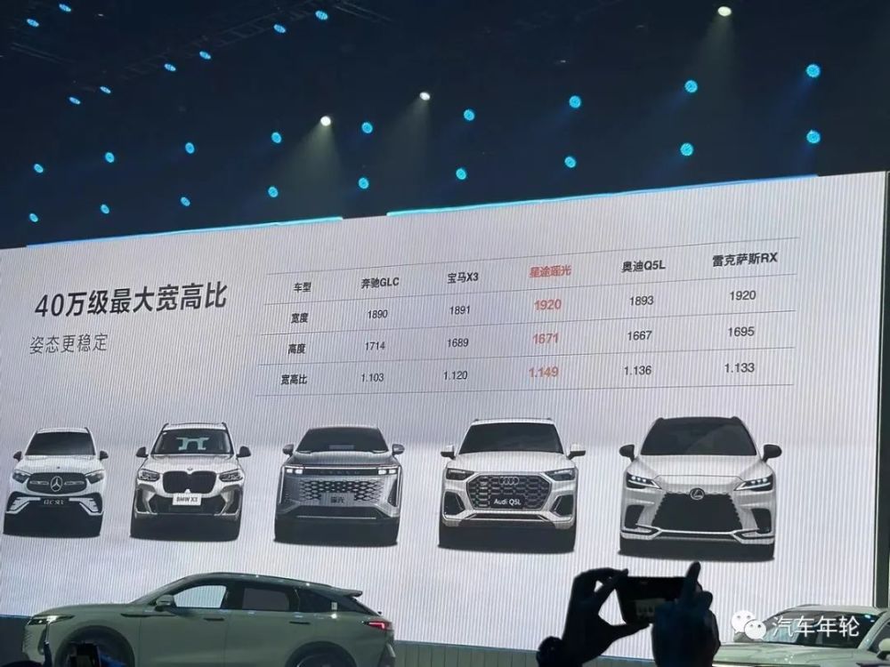 与其他汽车企业上市活动不同,此次星途瑶光上市,直接将其产品特质对标40万级别主流车型,如奔驰GLC、宝马X3、奥迪Q5L、雷克萨斯RX,一度在品质车型,与上述车型在车身尺寸、安全碰撞标准、智能配置等方面进行直面“硬刚”,以“2.0T+7DCT,CDC电磁悬挂,飞鱼超感底盘”等亮点特质加持,被称“40万级最强舒享驾控SUV”。