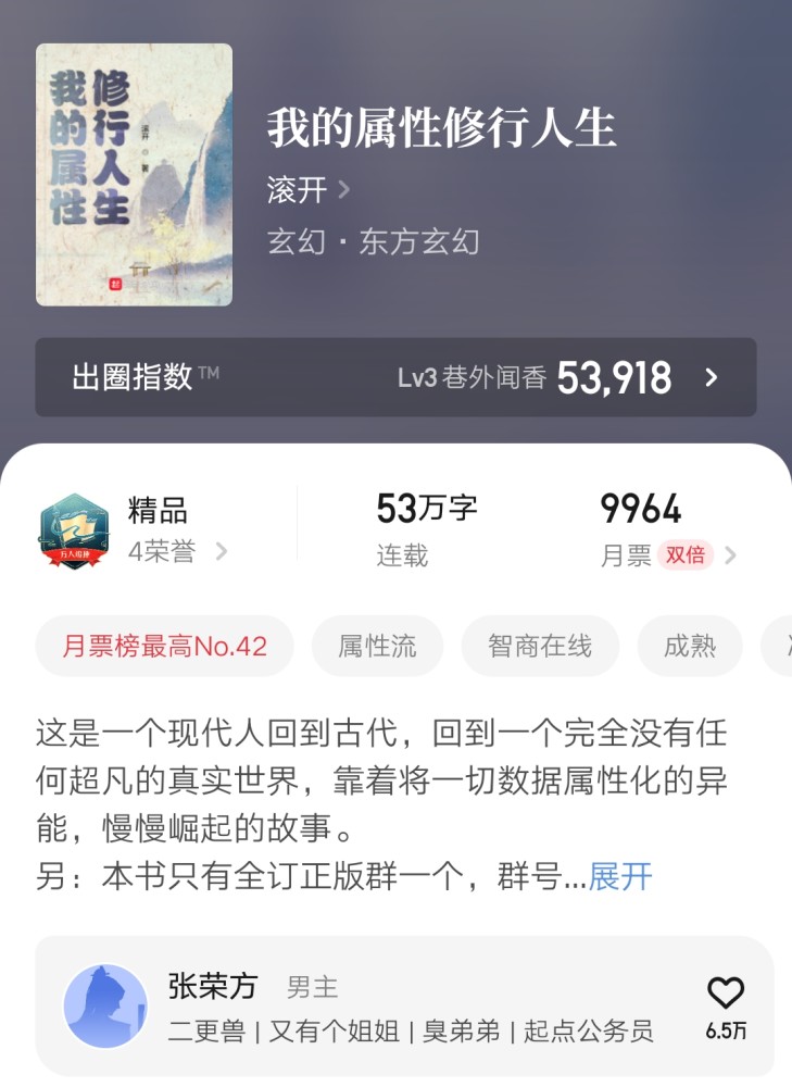 至于滚开的《我的属性修行人生》个人感觉算是越写越有意思了,这一点多少还是出乎我的预料的。