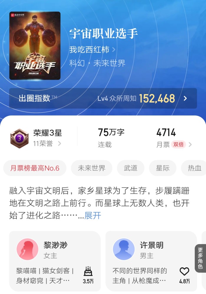 另外既然有人私信我《宇宙职业选手》和《我的属性修行人生》的情况了,那正好就来说一说,两本小说我也在今天看到最新章节了。
