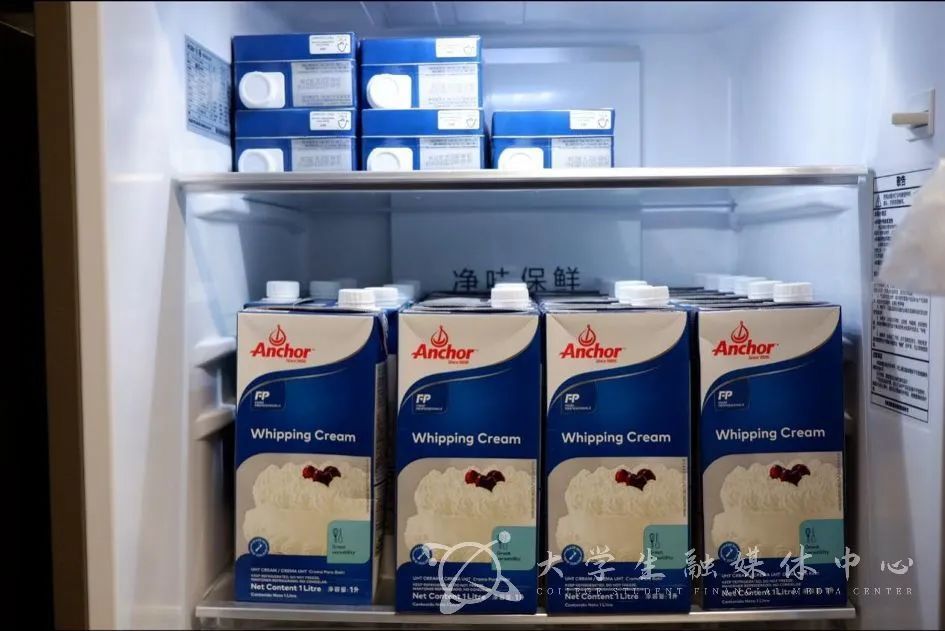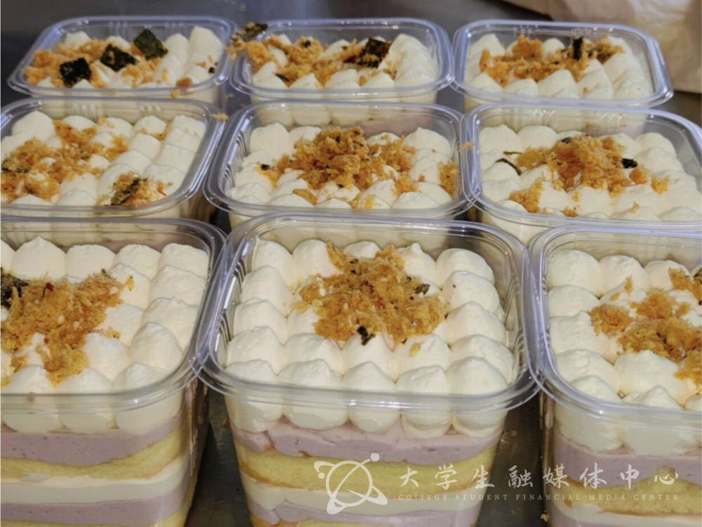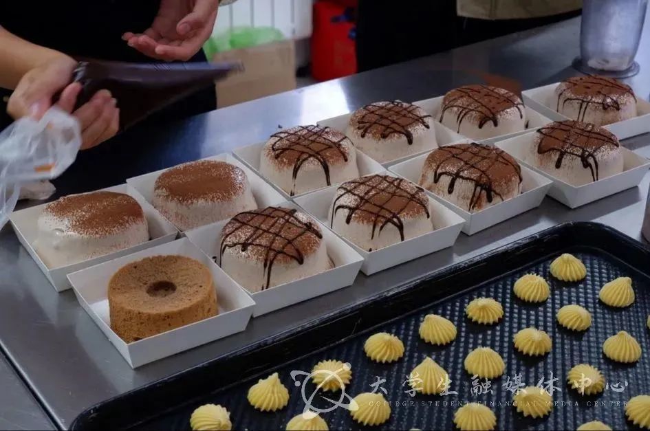 大鹏一日同风起,扶摇直上九万里。现如今,在创客工坊每一个人的努力下,甜品种类也是多种多样。除了老师们比较喜欢的老朋友——豆乳盒子、麻薯等,还有像各种口味的毛巾卷、巧克力爆浆蛋糕、肉松小贝。当然,创客工坊也在一直鼓励新品的研发,比如拔丝蛋糕、芋泥盒子,而这些则全部由在校大学生自主制作,让学生们去探索如何通过一种标准化的生产发挥出一个工坊的作用,然后还要去做一些向营养健康方向靠拢的努力,比如尽量用安全的动物奶油。