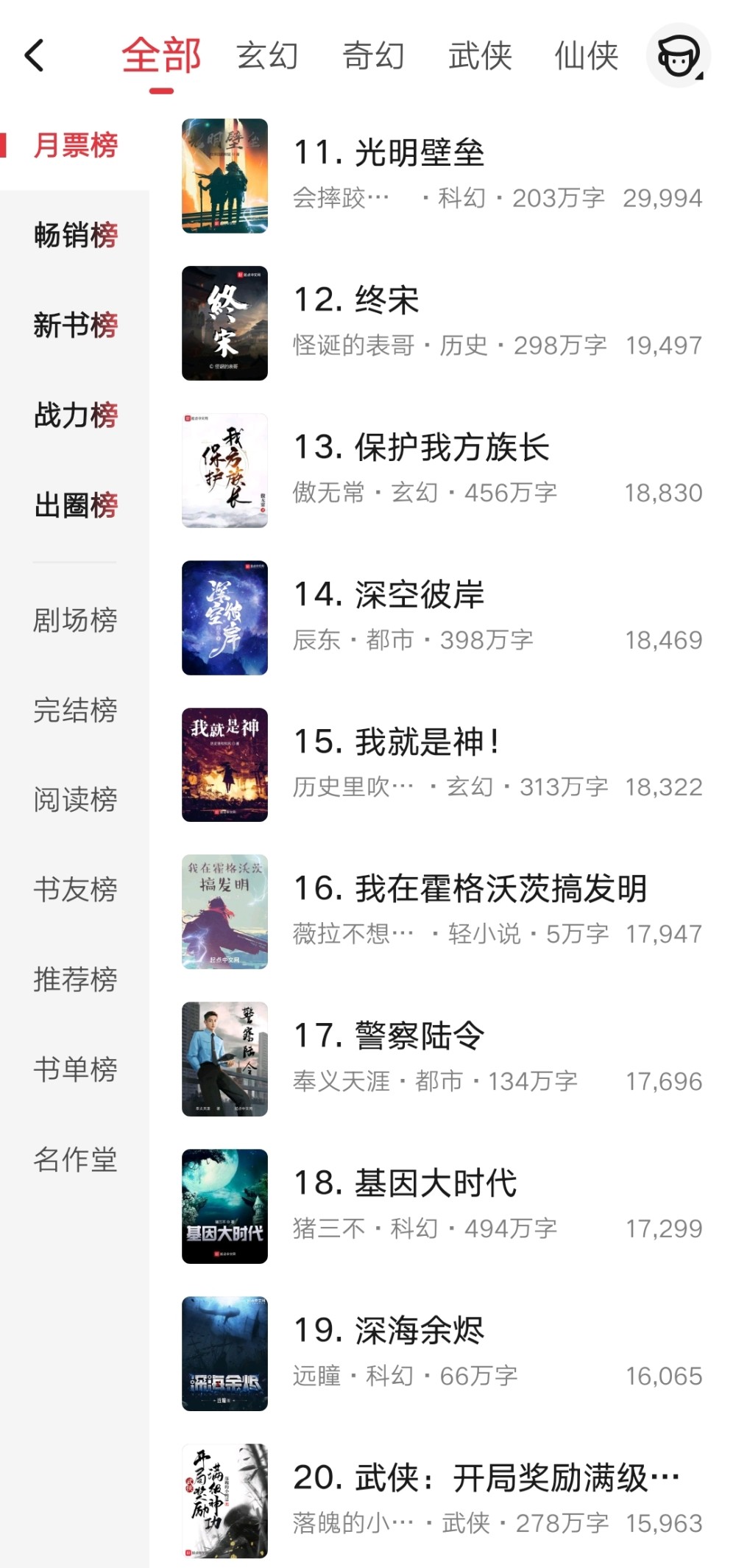 以上就是月票榜部分作品的情况了,希望其中有你感兴趣的小说吧。那么本期就到这里,我们下期再见。