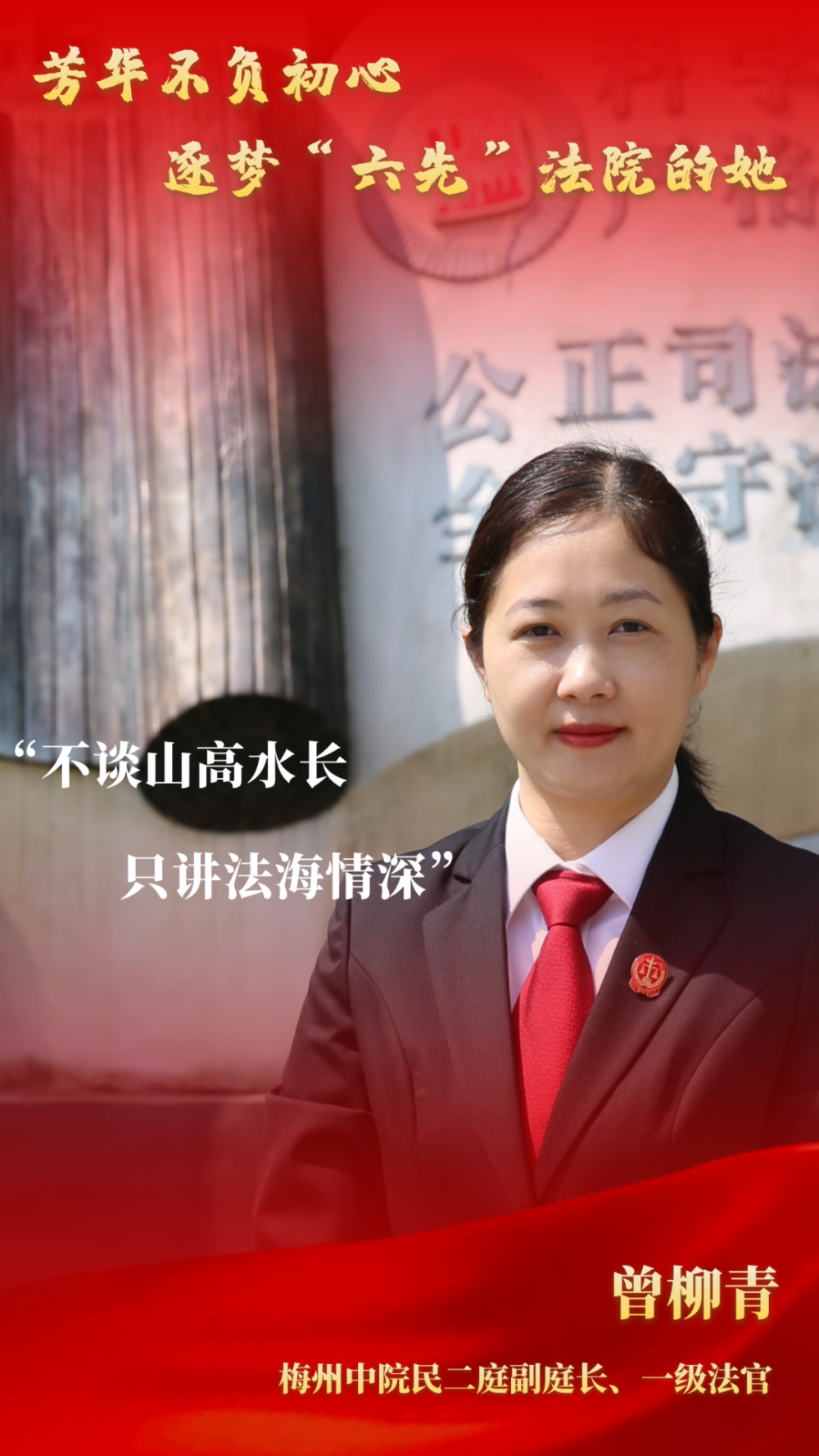 在梅州法院,有这样一群铿锵玫瑰,她们撑起公平正义的“半边天”,用灼灼芳华诠释信仰担当,用满腔热血逐梦“六先”法院。她们用纤弱的肩头,扛起法律的尊严和人间的正义。她们不负时代,不负人民,激扬巾帼之志,彰显促进社会和谐的“她”力量!这就是梅州法院的女法官。