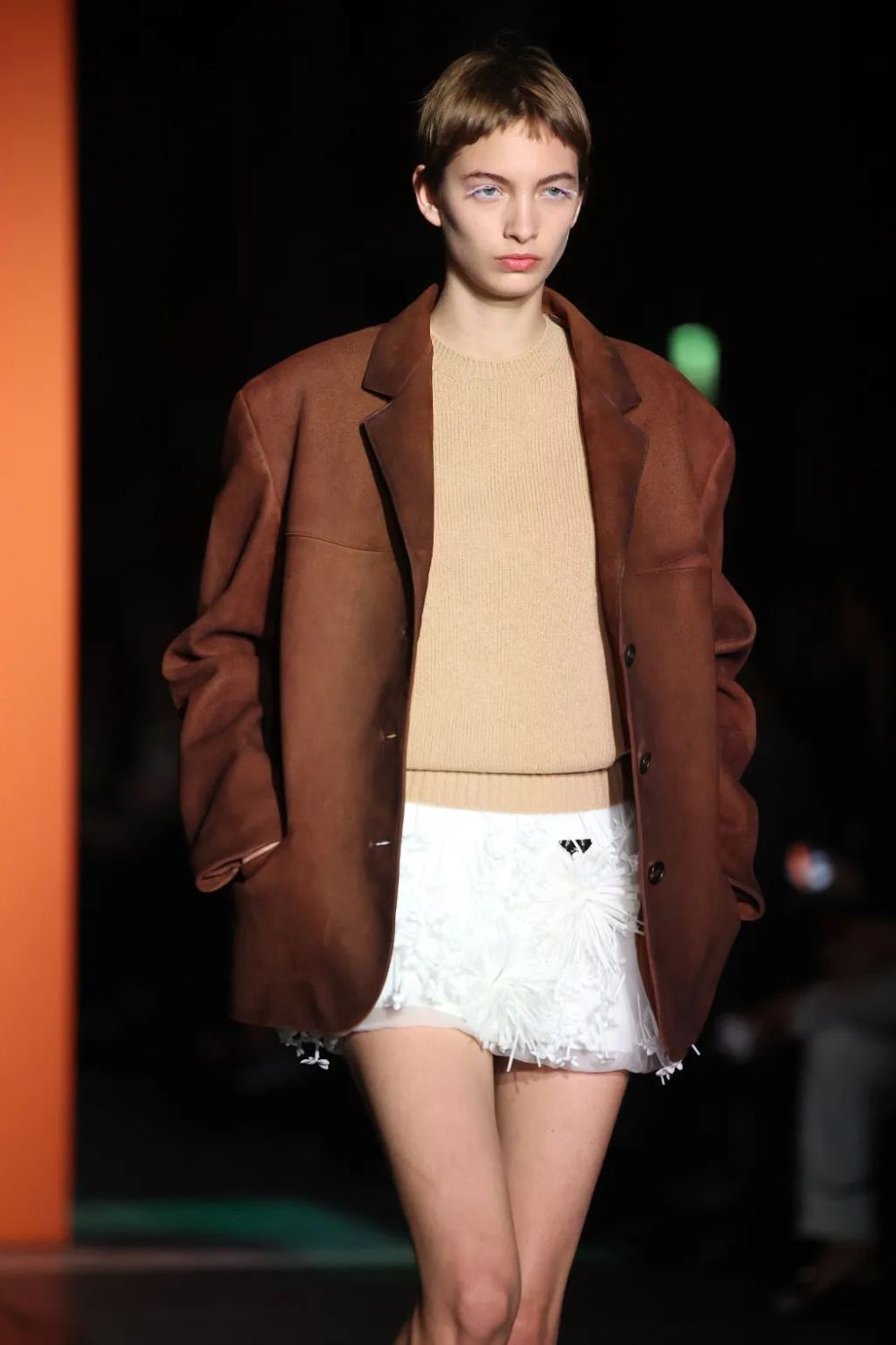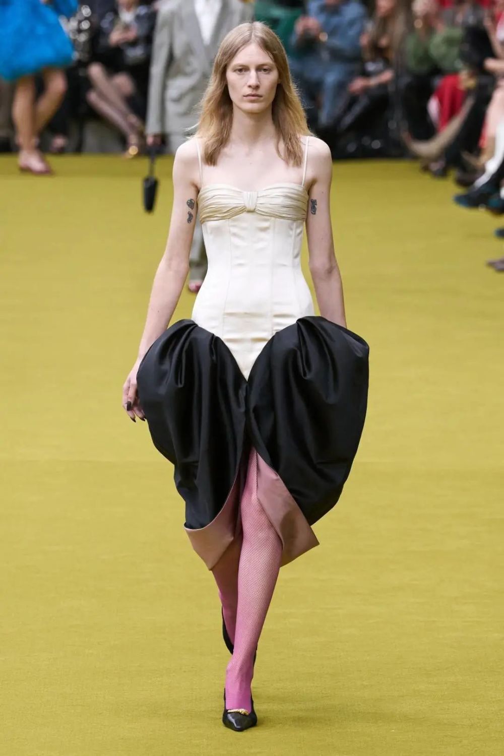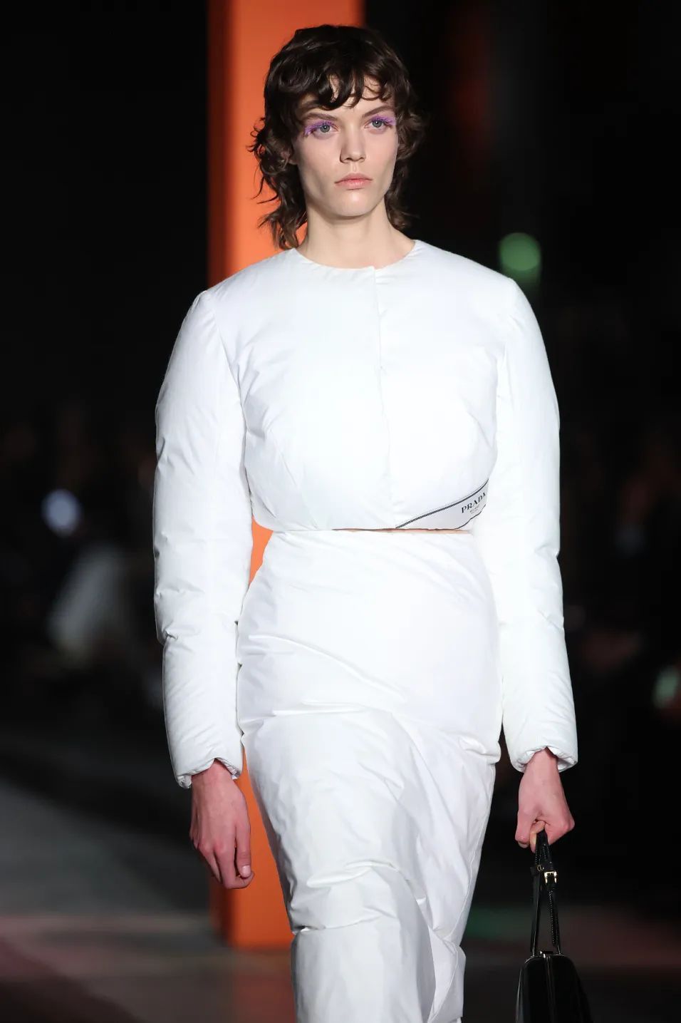 这对夫妇把自己 Y2K 的记忆注入了进去,就如用 Bj?rk 的“All Neon Like”作为秀场音乐,为这个冷静的品牌增添了一份潮流气息:酸性色彩、抢眼的糖果印花和 OAMC 式的机能元素,配上巴拉克拉法帽,米兰总需要一些新风格的贵妇。