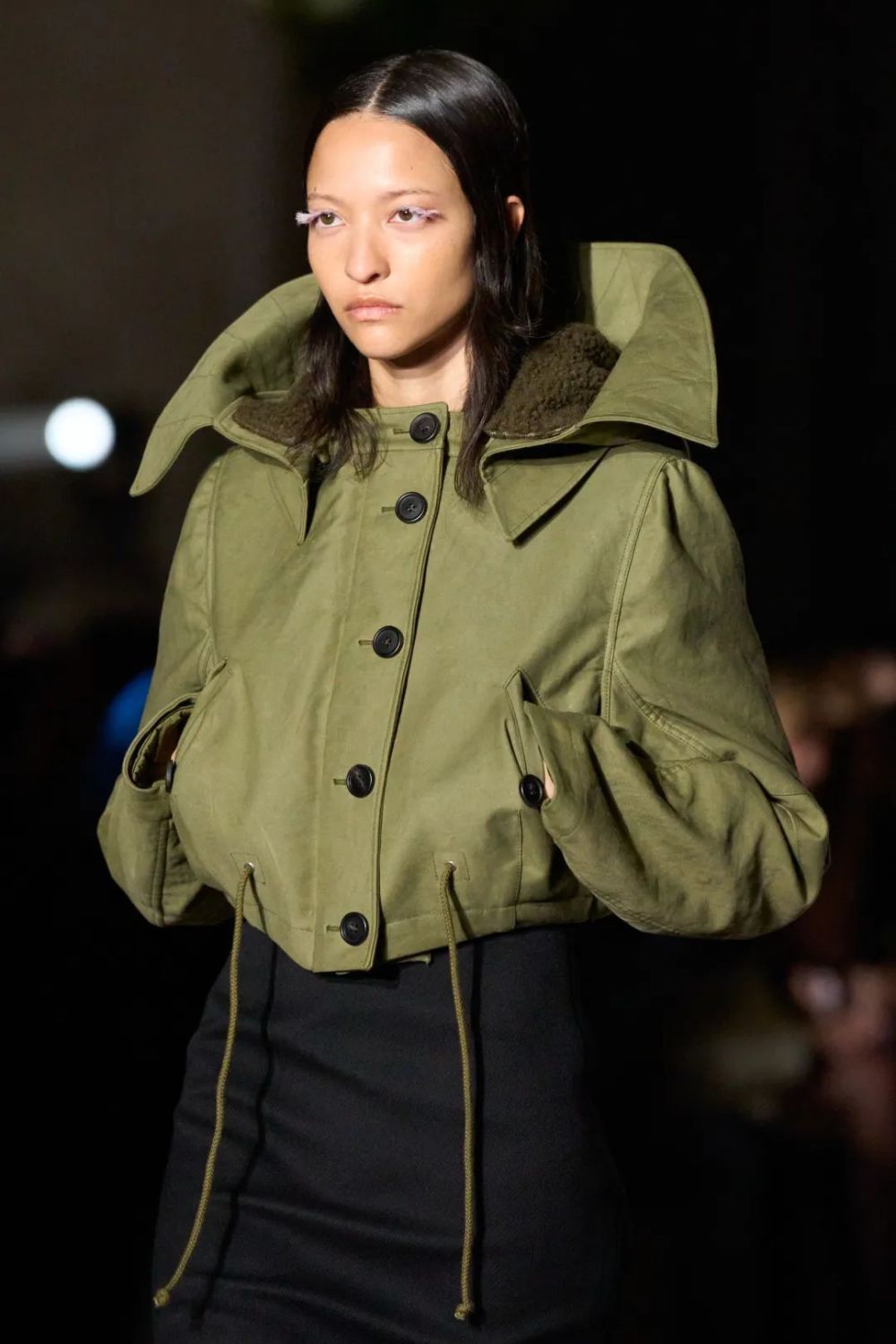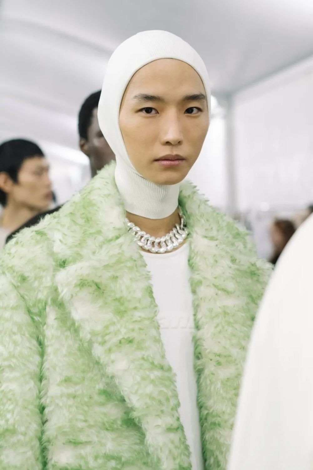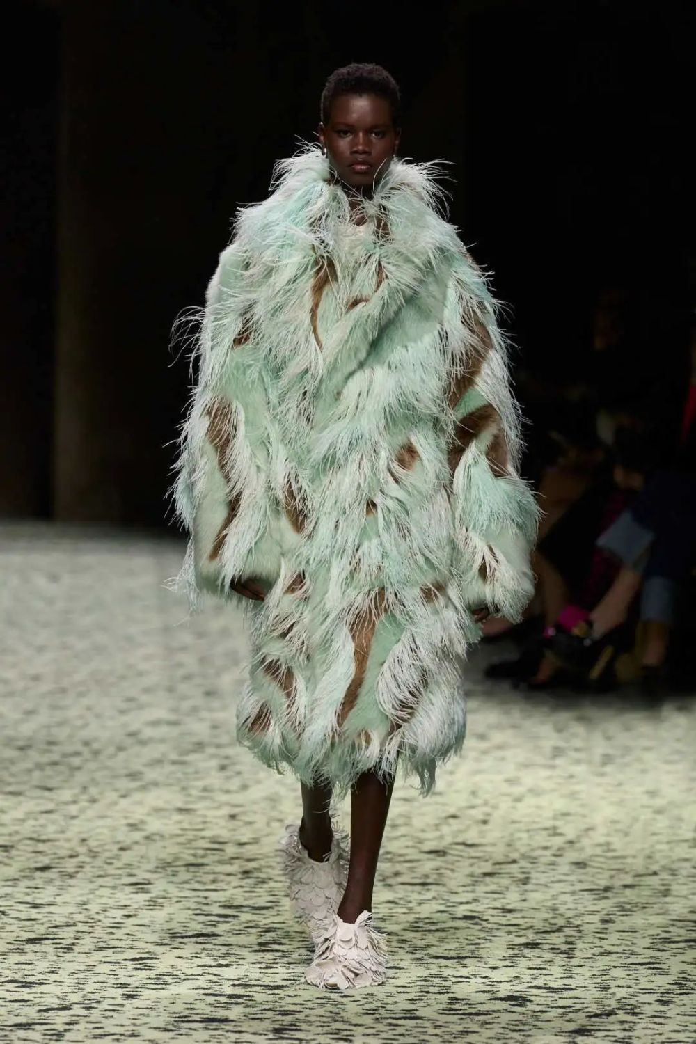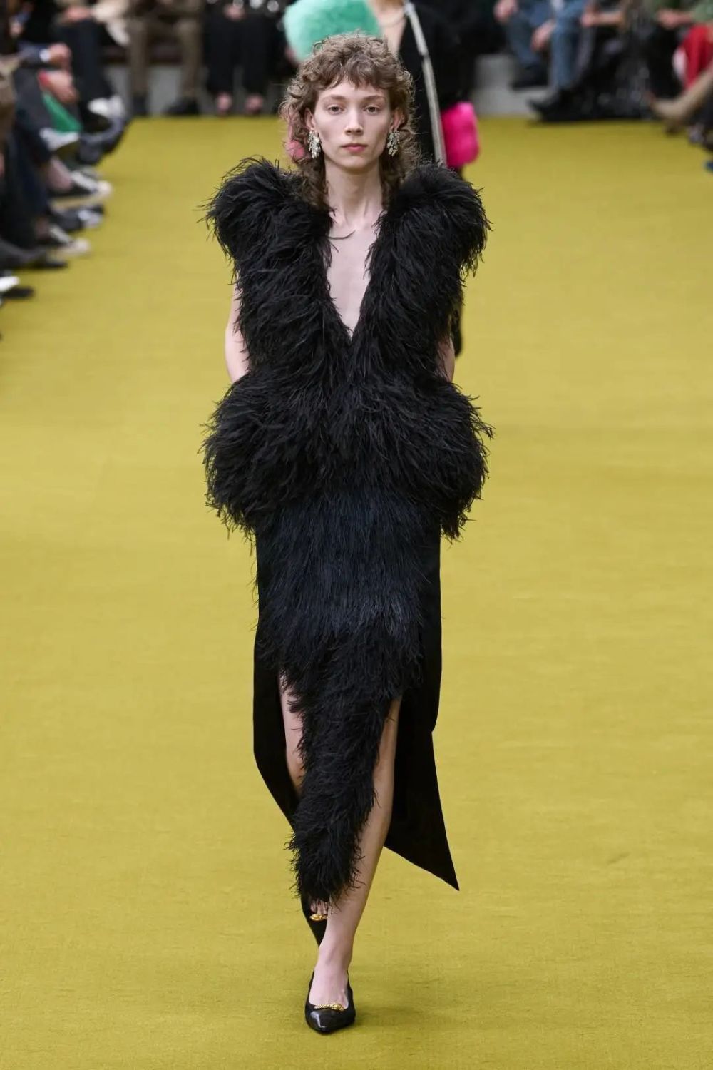 这对夫妇把自己 Y2K 的记忆注入了进去,就如用 Bj?rk 的“All Neon Like”作为秀场音乐,为这个冷静的品牌增添了一份潮流气息:酸性色彩、抢眼的糖果印花和 OAMC 式的机能元素,配上巴拉克拉法帽,米兰总需要一些新风格的贵妇。