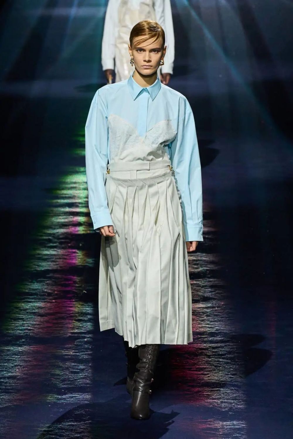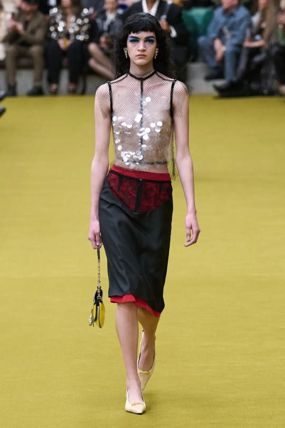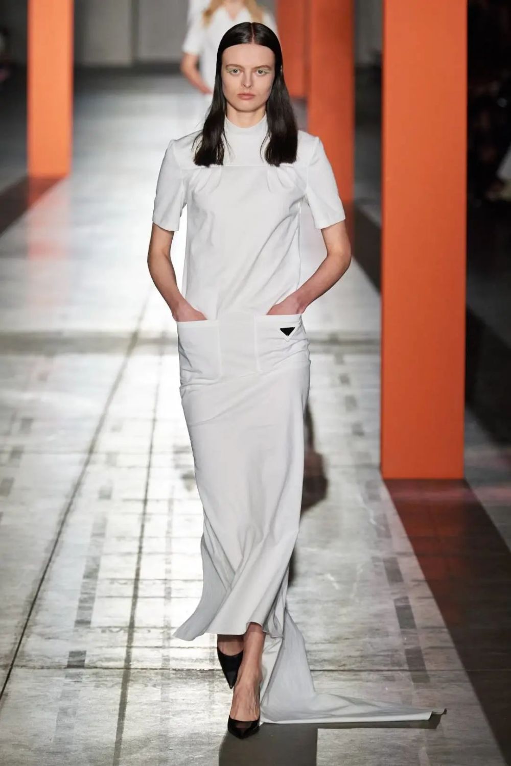 廉价的护士服、呆板的军装制服变身礼服,上班通勤装搭配了如婚纱一样精致的半裙。Prada?打破了正式与非正式之间的藩篱,使寻常与特别的着装彼此对话。