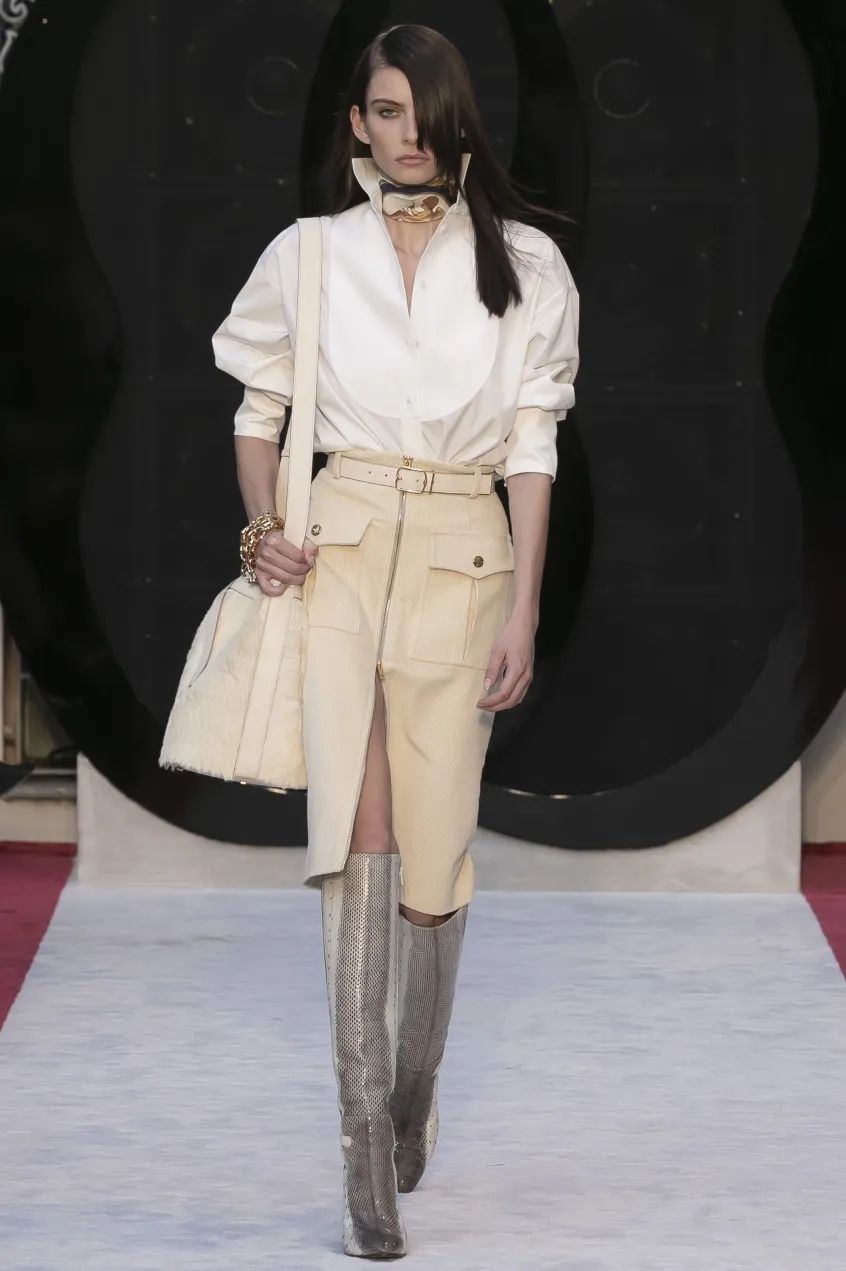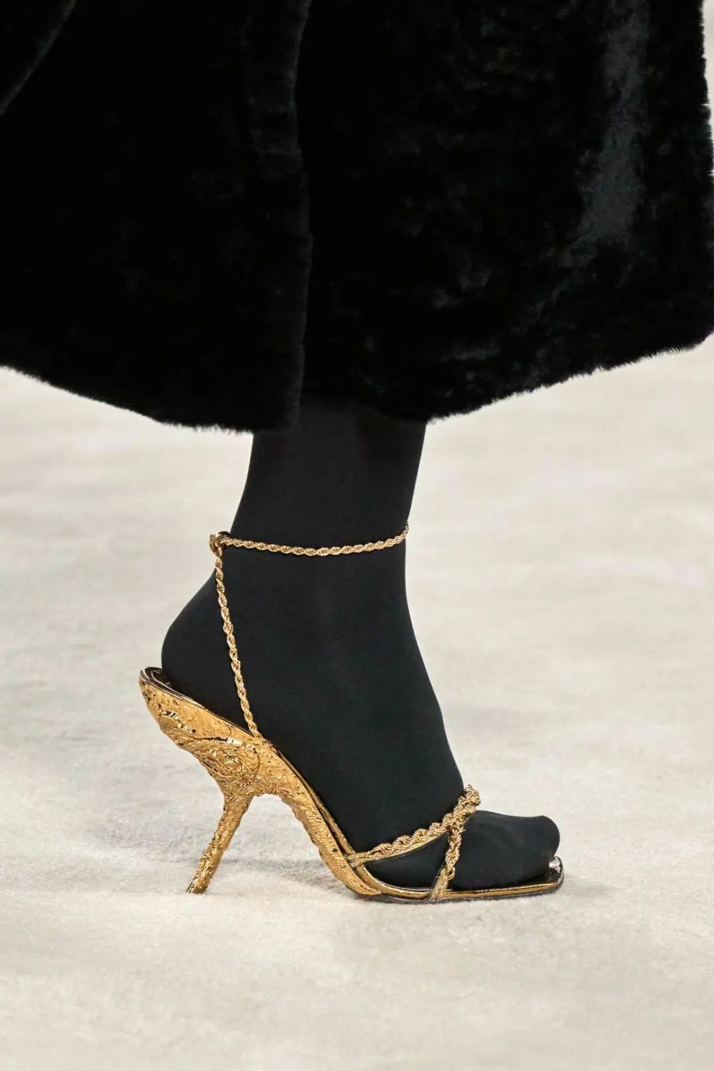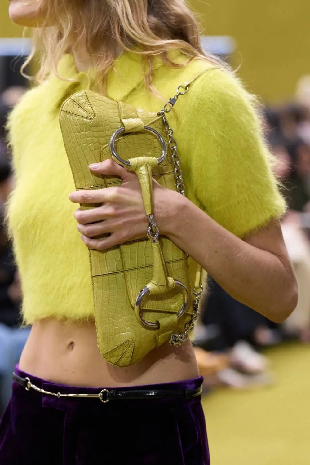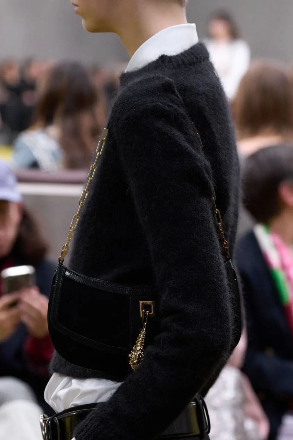 配饰方面,2003 年复兴的马衔扣手提包、1990 年代的金属钉鞋跟等经典单品在这一季重新复兴。