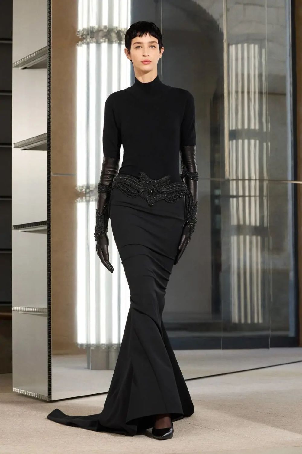 开衩,露背,如肌肤一样的长靴裹住整条腿,钢针一样的高跟鞋插向地面……但他的调色盘非常经典,黑色、红色、白色、驼色,使得这些性感的衣服也可以穿入日常。