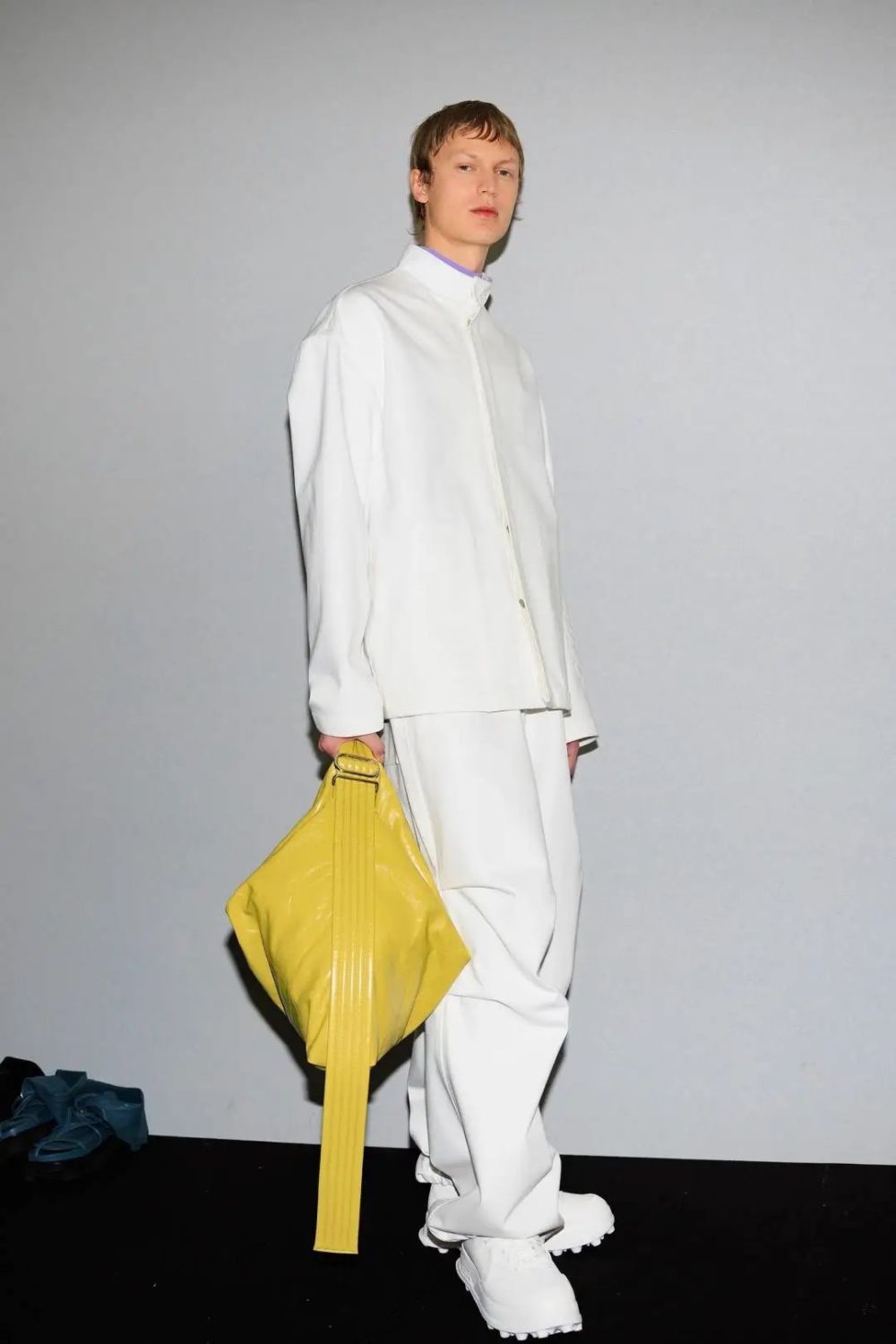 他将人们最熟悉的日常推向了“不确定中”:看起来像针织袜靴的皮靴,宛如衬衫、背心、牛仔裤、雨衣的皮衣,像土耳其长袍一样的男士针织衫,还有看起来像正装的针织衫……在 他的 Bottega Veneta 中,你无法用肉眼来辨认一件服饰的材质。唯有穿着它,感受它。