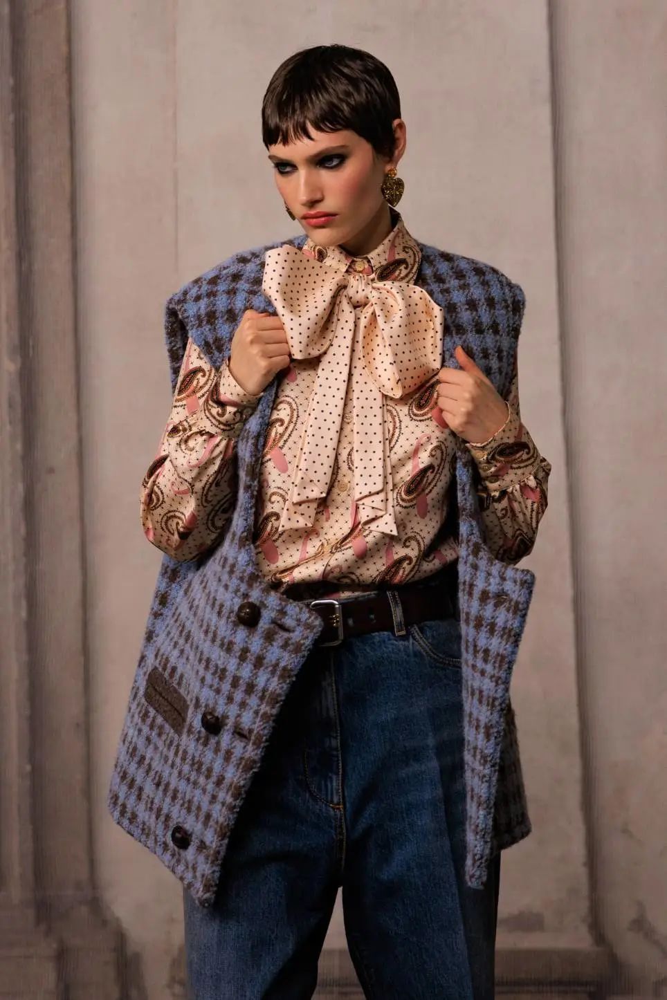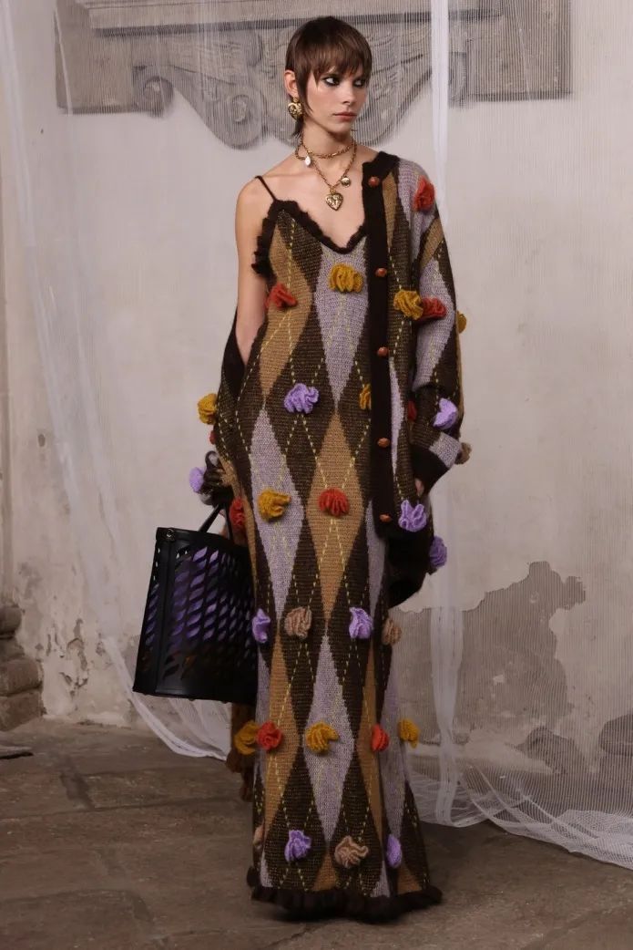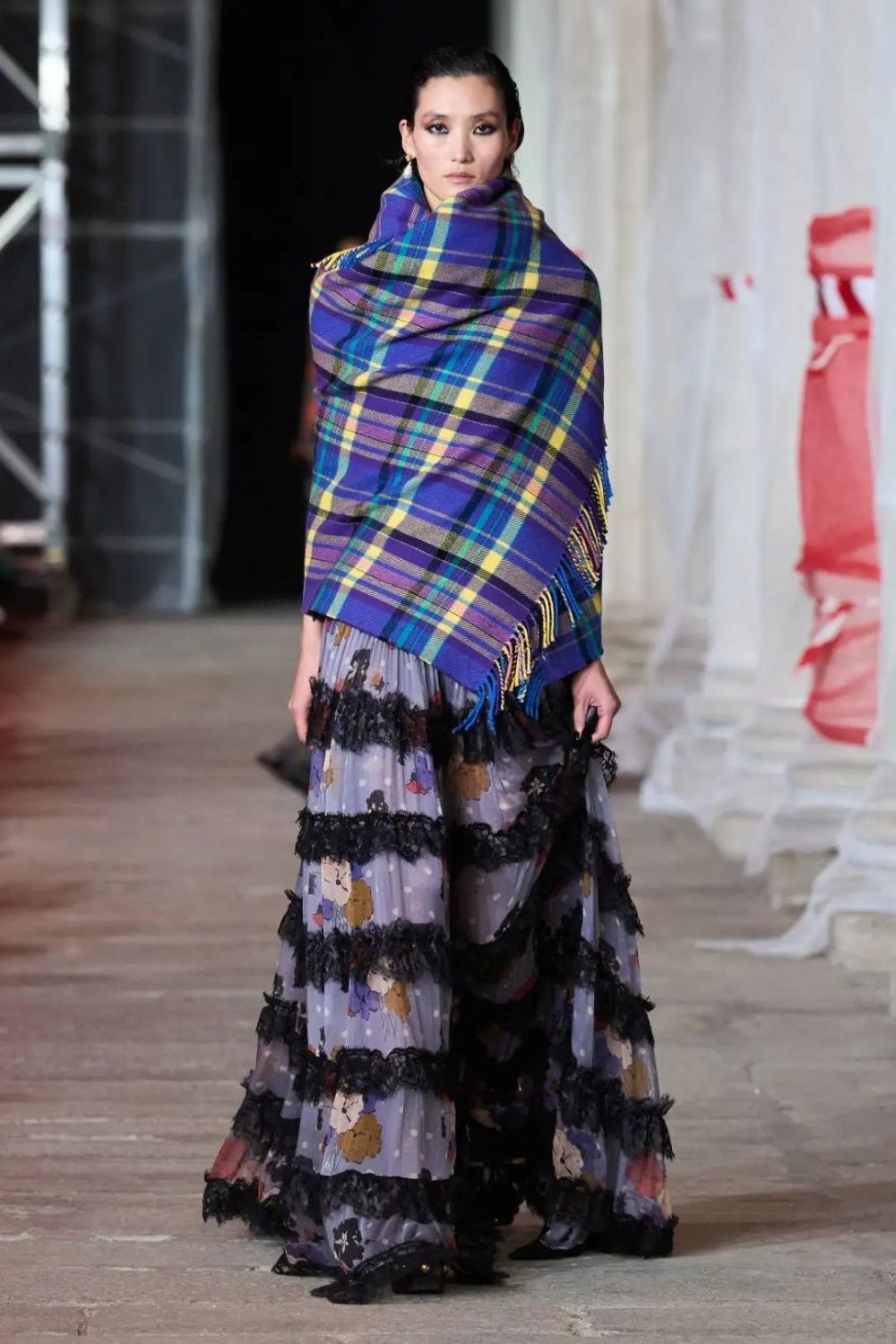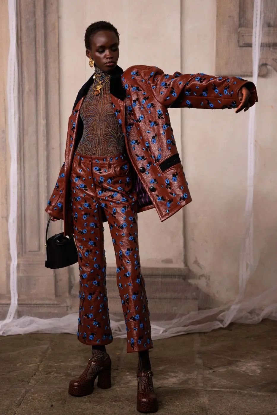 这是一场革新之旅。这个品牌经典的苏格兰格纹、Cravatteria 复古印花和佩斯里花纹重回眼前,以 Marco 擅长的光谱式配色混合。他西西里人的热闹张扬与?Etro 米兰式的华丽细节碰撞,呈现出 21 世纪新游牧风格。