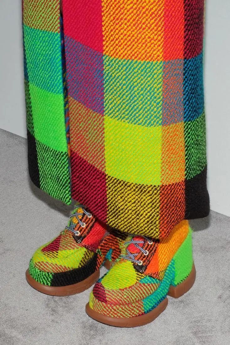 系列的单品采用大量充满活力的配色和图样,包含彩虹色方格外套、丝绒西装、露脐上衣,以及带有茸毛细节的围巾、手套、墨镜等配饰,耳环也充满色彩趣味,充满活力。