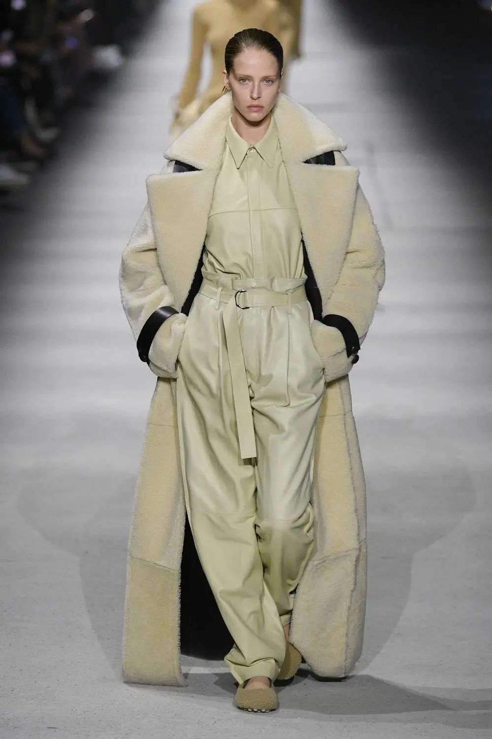 根据创意总监 Matthieu Blazy 打造的前面两季 Bottega Veneta 作品,我们可以推断:这身服饰都是皮革制品。