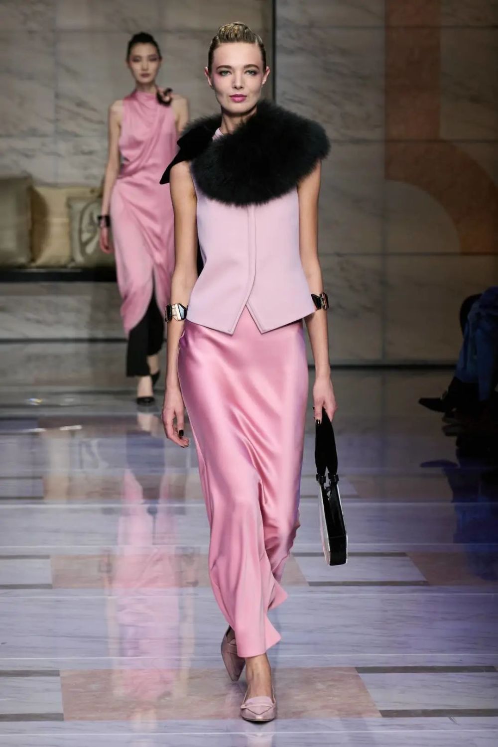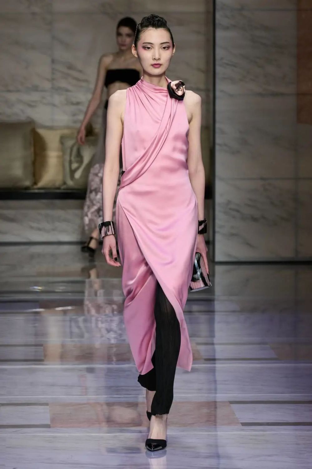 这个系列以 Cipria(香粉/扑粉)主题,柔软天鹅绒与丝绸飘逸流动,柔和但粉色系给人私密与亲昵感,老爷子用擅长的意式优雅,带给大家一场私人聚会。