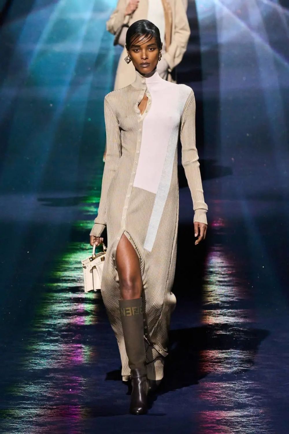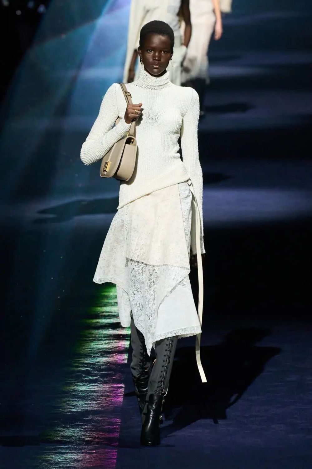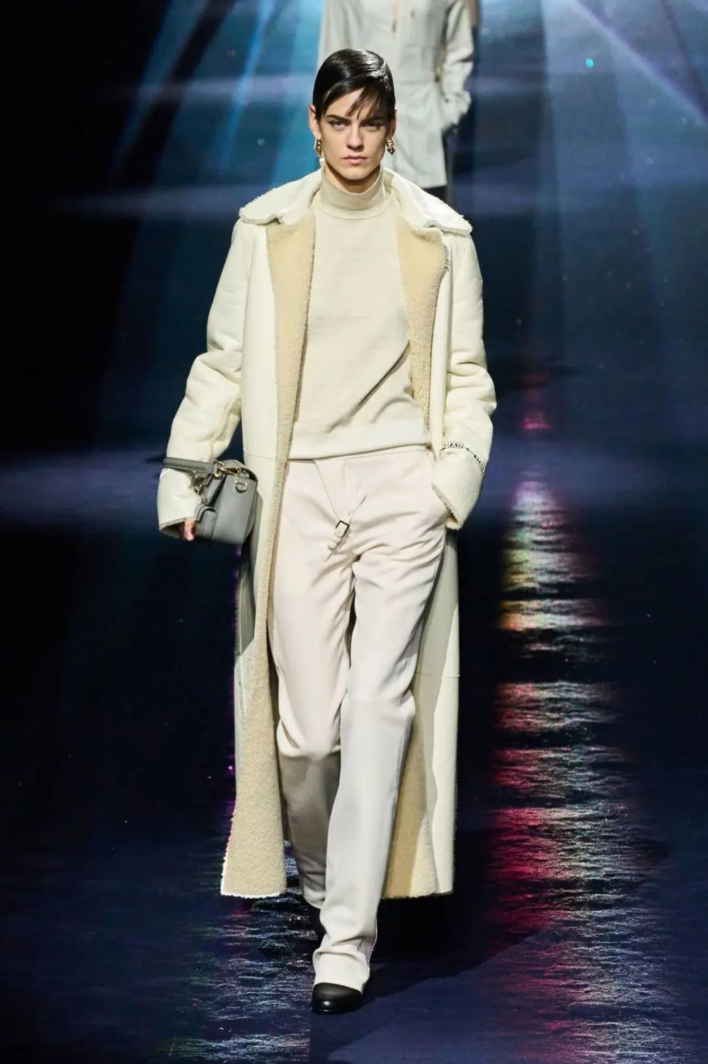 Kim Jones 以 “FENDI 家族第四代代表“ Delfina Delettrez Fendi 的着装造型为灵感,在这一季探索古典主义与优雅格调。
