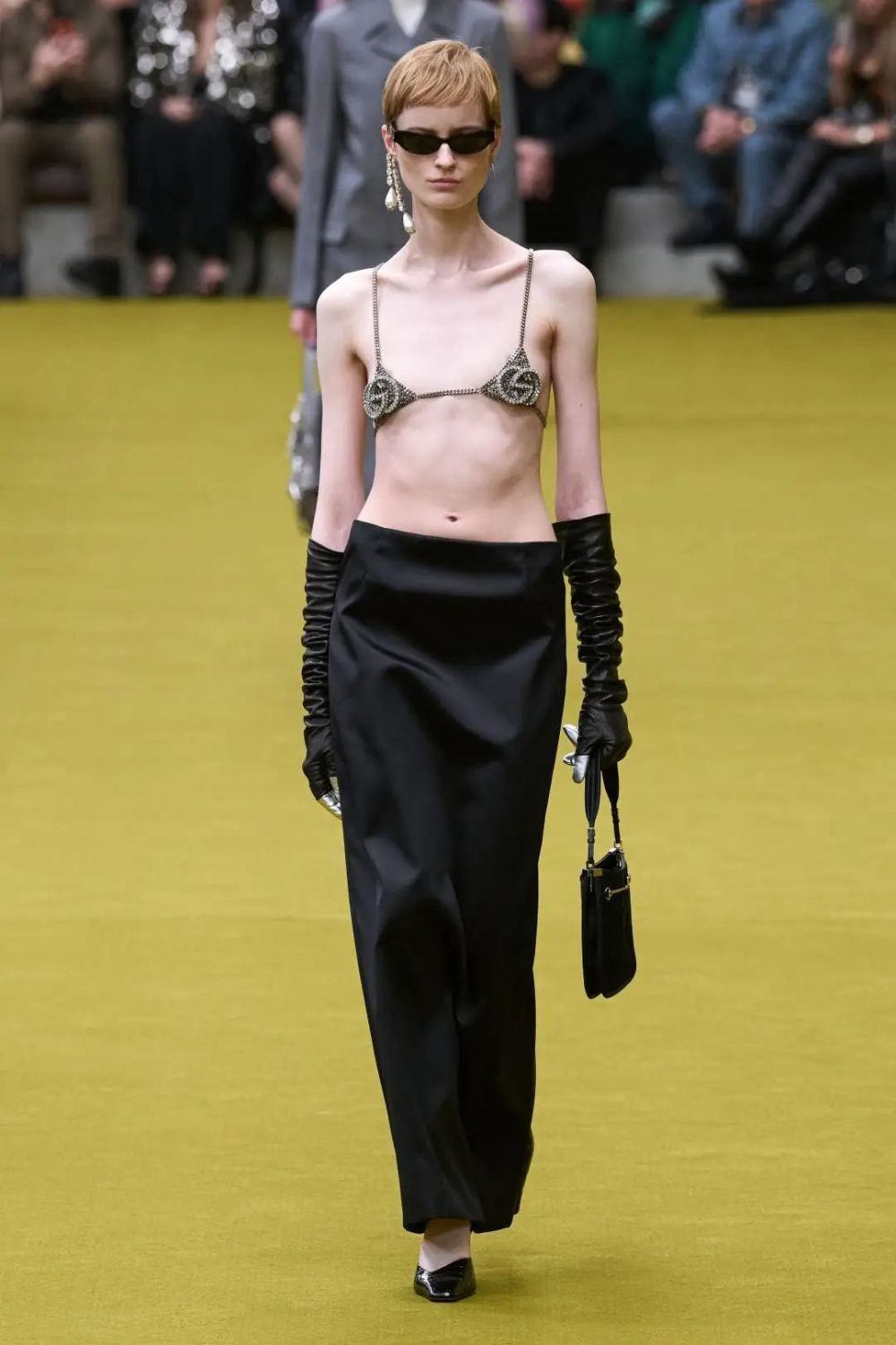 不过,Trussardi 的“老”可没有古堡里的霉灰味,Benjamin 和 Serhat 创造了一些都会女战士,性感但不好惹。他们把自己小趣味藏在了墨镜、耳饰和裙摆上。