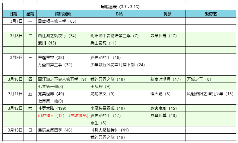 嗯,多啰嗦了一会,最后送上追番表吧。