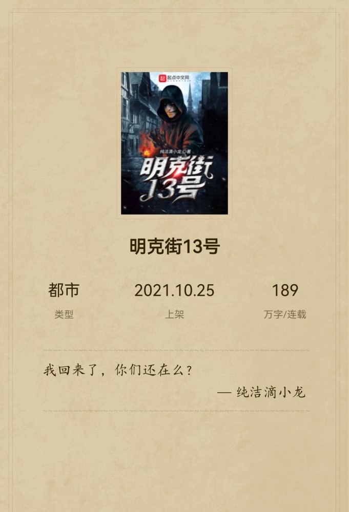 大家都还在对诡秘之主念念不忘吧?相对比于对于打开克鲁苏市场的诡秘之主来说,明克街13号并不差,就算稍有逊色也少的有限。