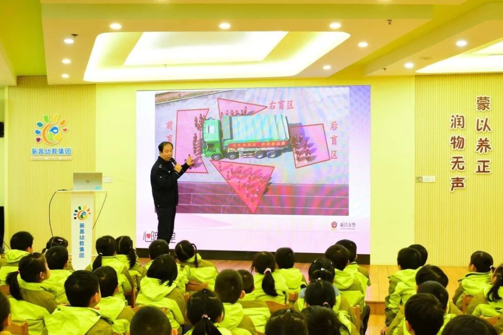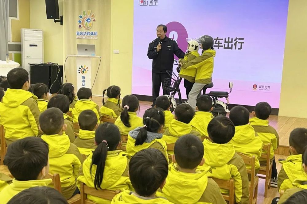 近日,浙江省绍兴市新昌县公安局交警大队走进县新幼集团,为孩子们带来了一堂内容丰富、生动有趣的交通安全课。