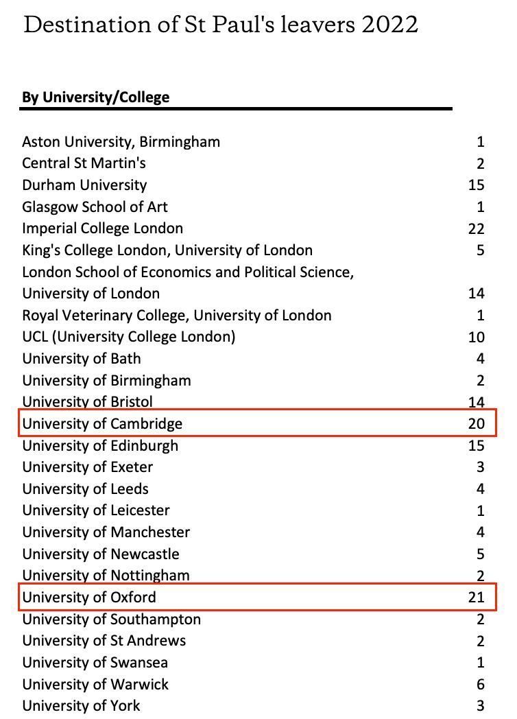 在选择留在英国学习的学生中,最大的比例是去牛津和剑桥——过去五年平均为31.6%。2022年,在220名毕业生中,有21人入读牛津大学,20人入读剑桥大学。