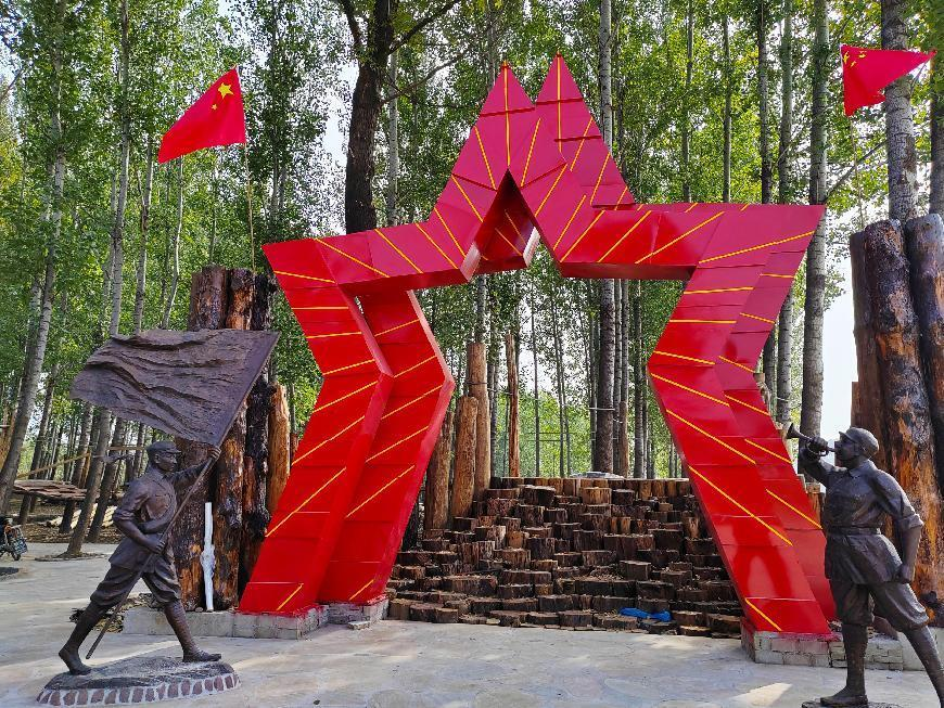 主要项目是模拟长征路,占地10000平米。重走长征路,形象的再现了当年红军从瑞金出发、历经血战湘江、遵义会议、四渡赤水、巧渡金沙江、强渡大渡河、飞夺泸定桥、爬雪山过草地、甘肃会宁会师等十个重要节点。红色党建文化广场占地4000平米。从灵寿这片热土上建立的第一个党支部开始,生动再现在党的领导下历经抗日战争、解放战争、新中国建立、改革开放特别是十八大以来全县社会经济发展的累累硕果。抗大二分校森林课堂占地4000平米。抗大二分校在灵寿开办四年多,培养出了66名将军。现在赫赫有名的石家庄陆军指挥学院,前身是华北军政大学,而华北军政大学又脱胎于抗大二分校。当时在敌后办学校,困难很多,没有教室就在树林里上课,没有坐具就用背包作椅凳,把膝盖作桌子,没有足够的笔墨纸张,就把锅底的烟灰刮下来作墨水,或者以树枝作笔,在沙地上练习写字。森林课堂就是要还原当时一部分。每年在区内开展儿童少年研学、企事业单位、大中专院校团队拓展、团建、模拟长征路线的定向越野活动等,吸引着越来越多人参与。河北省电视台经济生活频道的《加油!少年团》栏目组带领少年团队员来到旅游区录制节目,进一步扩大了花溪谷树桥旅游区的知名度。