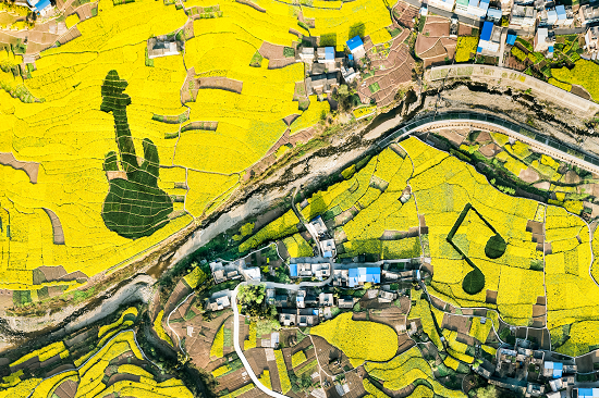 奉节县甲高镇有万亩油菜花,微风轻拂,金灿灿的花海与远山近水、村落民居交相辉映,春日的乡村画卷就这样在眼前徐徐展开。
