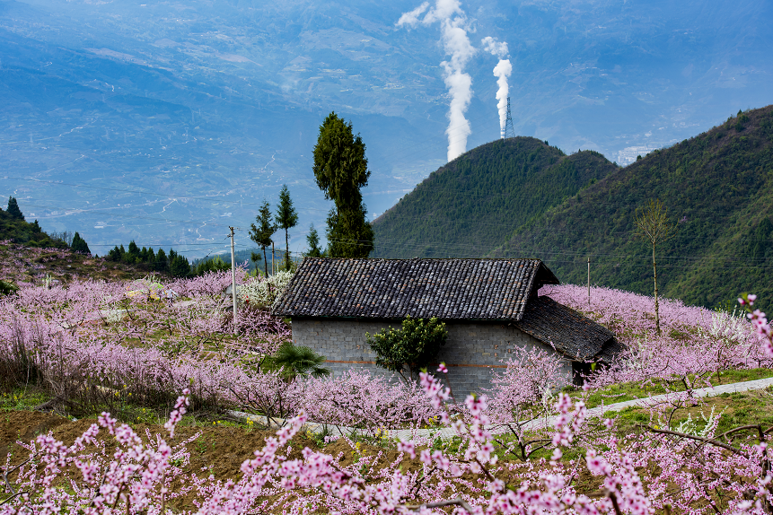 春季的丰都,龙孔镇桃花灼灼,李花开似雪,武平镇雪玉山上野樱花和火棘花竞相争艳,仿佛星光点缀满山。