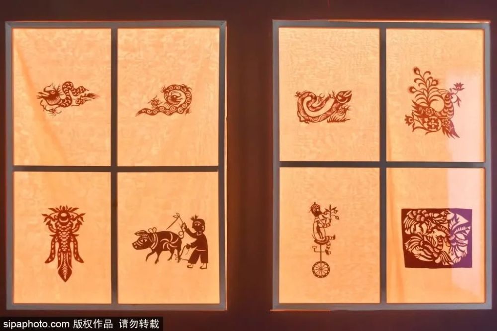 展览还展出了炎黄艺术馆馆藏以及中央美术学院教授冯真捐赠的民间剪纸作品,如来自安徽的农民剪纸艺术家程建礼创作的《骑马射箭》、甘肃省庆阳剪纸省级传承人惠富君创作的《狮团花》等。