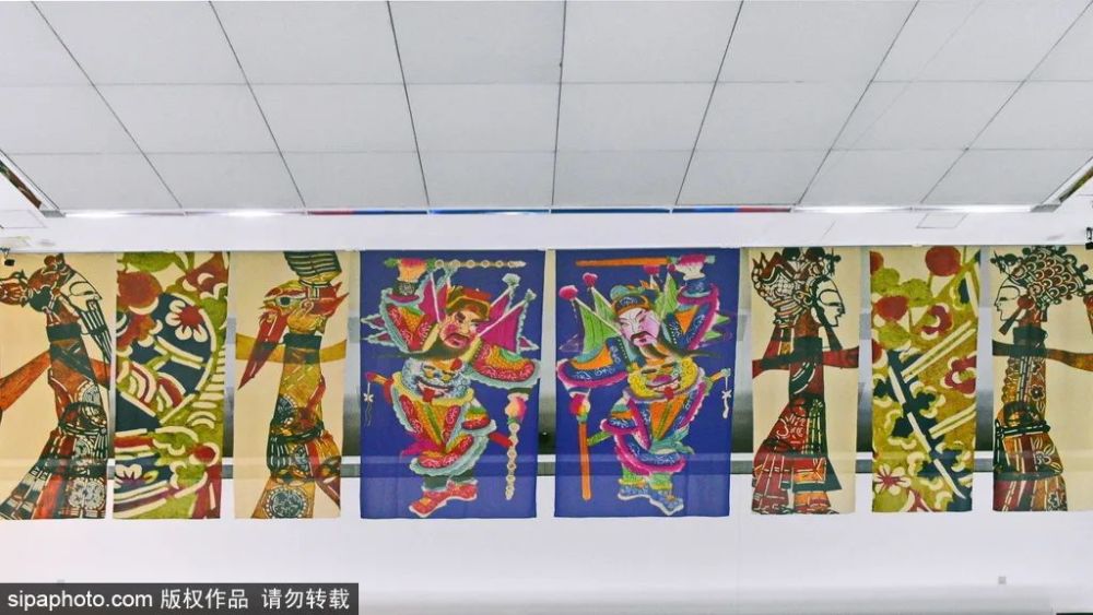 “乐亭皮影”俗称“乐亭影”,发源于河北省乐亭县,是中国皮影戏的主要剧种之一,自金代到清初逐渐发展成熟。现场的一个个灯箱上展出了多达四五百件皮影,不仅覆盖生、旦、净、丑诸多经典人物形象,而且还有丰富的动物、道具和布景。