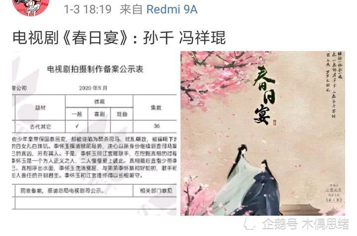但《春日宴》已定的两位主演是孙千、冯祥琨,相信许多观众都不太认识这两位新人演员吧。女主孙千倒是出道有一段时间了,出演过《快把我哥带走》《新流星花园》《萌医甜妻》等剧,去年也因参加《演员请就位2》人气大涨。而男主冯祥琨基本上没什么演艺经验,只参演过电影《我是真的讨厌异地恋》,可以说知名度是很低的。