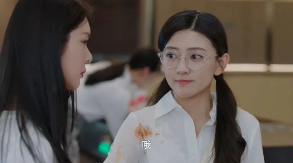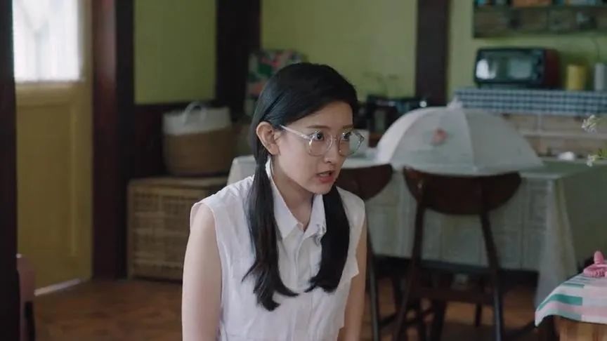 所以为了强行让她贴合角色,剧里就“模式化”的给了她低双马尾+大框眼镜的装扮,想要以此来突出她的“村”和“土气”。