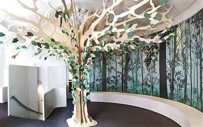 负责教育机构导览的馆员接待了我们。我们参观的主要内容有:最后时刻和有尊严地离世,逝前愿望,悼念与追悼形式。在进入四个主题空间之前,会看到一棵生命树,参观者可以把自己生命中最重要的愿望和想达到的人生目标写在树叶形的纸片上,然后挂在树上。翻看这些树叶,对参观者而言也是一种心理上的震撼。在留言中,我看到这样一句话:“我希望有一个好死。”“好死”在丹麦语里就是两个极其普通的词,但出现在这样的场景中,却让人感慨良多。穿过片片树叶的缝隙,可以直接看到灵柩室里白色的棺材,这种空间上的反衬预示着生死之间的必然联系,而“好死”则意味着在家人的陪伴下安详和满足地离世,这何尝不是人生的最高境界呢?