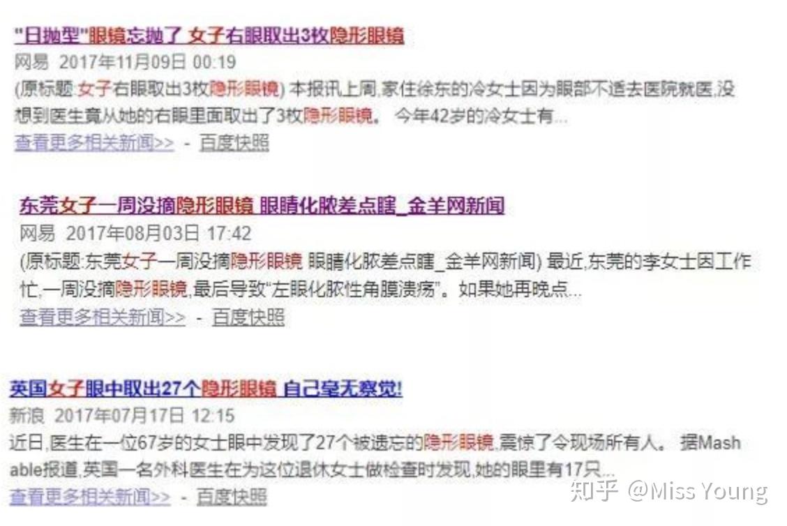 自打市面上出现隐形眼镜后,关于它的谣言就从未停止过,三天两头就会有“从某女子眼中取出多只隐形眼镜”,“长期佩戴导致失明”、如果戴隐形10年,角膜内皮细胞密度会相当于60岁老人,无法承受眼科手术”...之类的新闻。