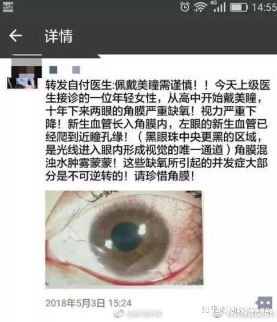 美瞳随便买买就好了?https://www.zhihu.com/video/1043181293185597440就比如之前看到这样一张图,说是一个妹子戴了10年隐形眼镜,造成角膜严重缺氧,视力下降,新生的血管已经爬到瞳孔边缘,未来有失明的可能。