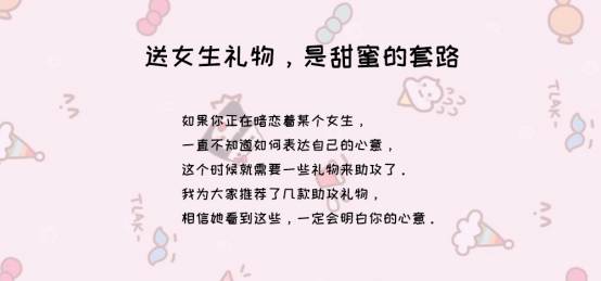 如果你正在暗恋着某个女生,一直不知道如何表达自己的心意,这个时候就需要一些礼物来助攻了。