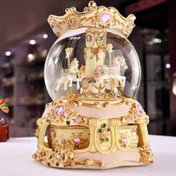 这个水晶球的设计源于绘本《阿狸尾巴》中一个充满爱的故事,水晶球内置音乐机芯,LED灯可变换颜色,球内可旋转并实现自飘雪功能。