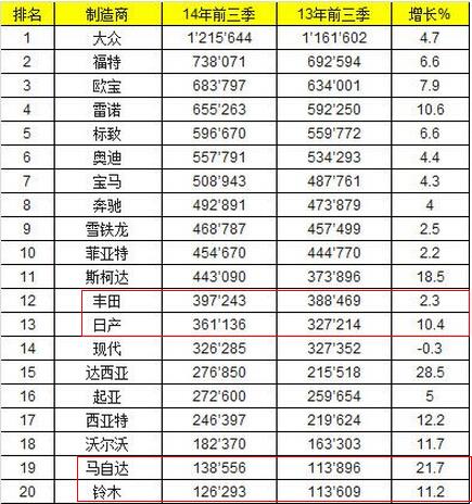 网上随处找个欧洲前三季度的销量情况了解一下就知道,日系车是很难挤进销量前十,而欧洲销量前十车型日系车也只有日产逍客,正如