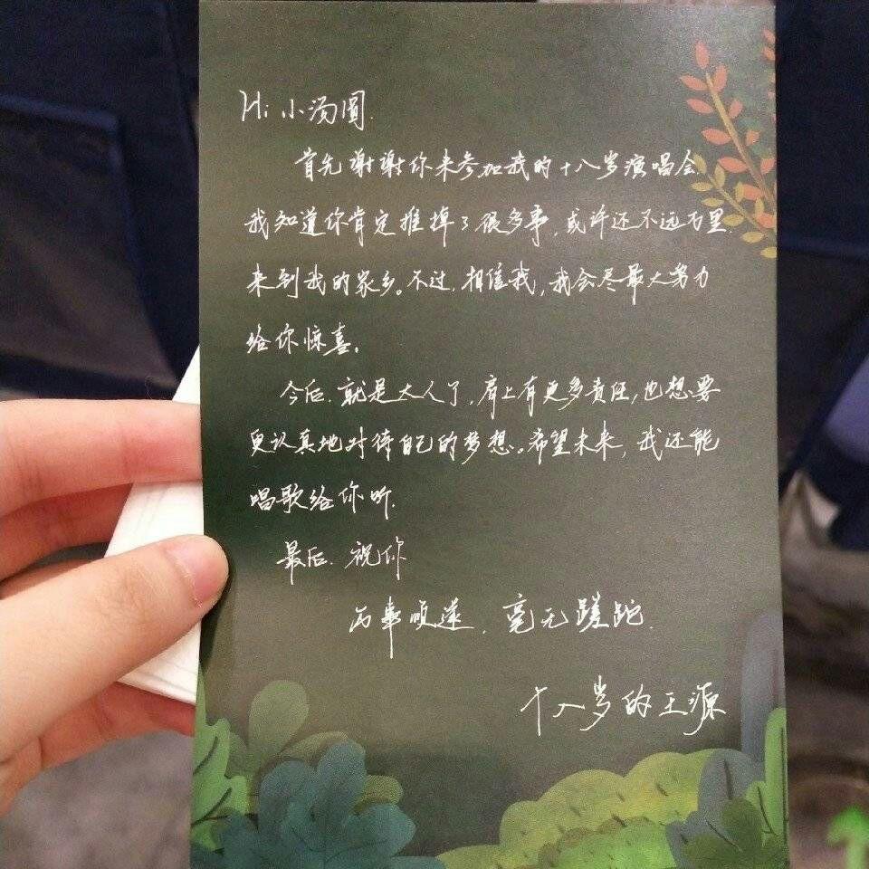感觉这次生日会的氛围非常好 粉丝大合唱很感动 源哥又送了一首给粉丝的歌 第一次的生日会送了大宝因为遇见你 十八岁的成人礼送了天使 他真的真的超级爱粉丝 以及给粉丝送的豪华大礼包和结束后的包车 还有手写字体的信 我真的羡慕死了 【图片cr】