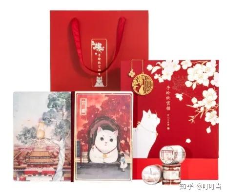 以故宫猫为创意元素,经手绘而成的笔记本。可爱的猫猫,穿梭于宫城之间,遍览气象万千。这个套装包含了笔记本、和纸胶带以及书签配置。采用特殊的油墨,图案局部凸起,特别有纹理感。配有主题手提袋,作为新年送朋友送同事,或者送学生,都是非常不错的。