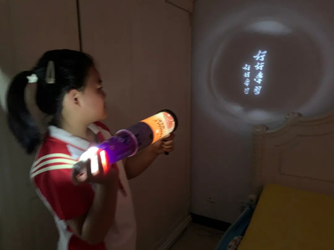 我利用手边的平时常用的一些材料给孩子做了一个投影灯,把毛主席为育英学校题词的“好好学习,好好学习”投在墙壁上。我把这个亲手做的投影灯作为“六一儿童节”礼物送给孩子。希望她能够明白今天她所拥有的幸福生活是多么的来之不易。希望她能懂得毛主席的寄语背后沉甸甸的责任与嘱托。希望她在迷茫、困惑、消极失落的时候,毛主席说过的话可以成为她的指路明灯照亮她的未来,指引她勇敢前行。