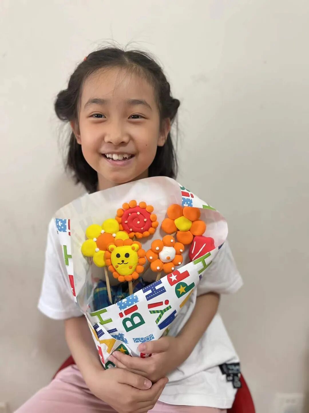 二年级5班 张天芯亲爱的天芯,儿童节是一个充满幸福和鲜花的节日!我和爸爸制作了太阳花,祝愿你永远幸福快乐,就像给你做的太阳花一样阳光灿烂。希望你即便在困难的环境当中,也要勇敢坚韧地拼搏。愿你在这美好的童年里,远离烦恼,纵情欢笑。我们永远爱你,儿童节快乐!