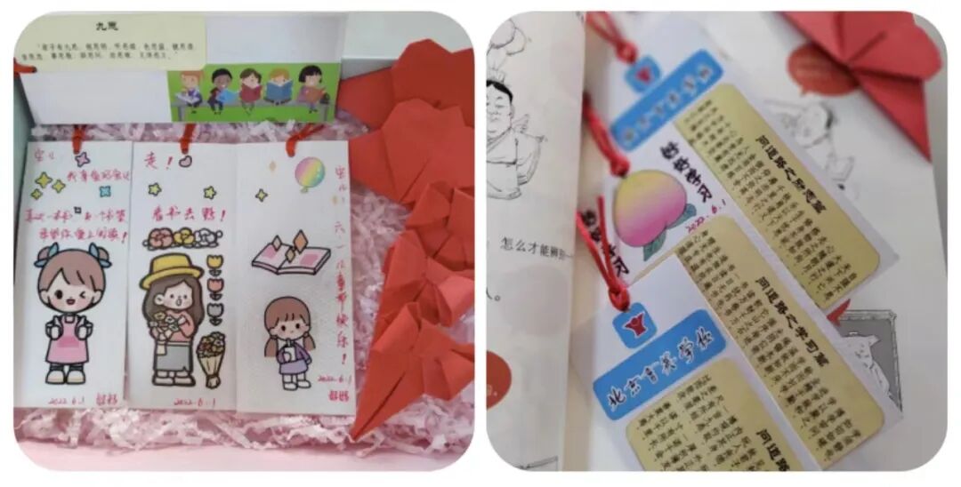 书签起源于春秋战国时期,当时称为“牙签”,用竹子制成。后来卷轴书改成折装以后,牙签也变薄了。宋朝以后对书签越来越讲究,有时会把一些座右铭之类的写在书签上。如今书签上印有诗词警句、名人格言和装饰图画就是源于此。书签不仅可用于标注读书进度,还可用于记录读书心得,书写批注。喜欢一本书夹一个书签,希望我的宝贝李美慧爱上读书,喜欢妈妈亲手制作的世上独一无二的书签!祝你六一儿童节快乐!