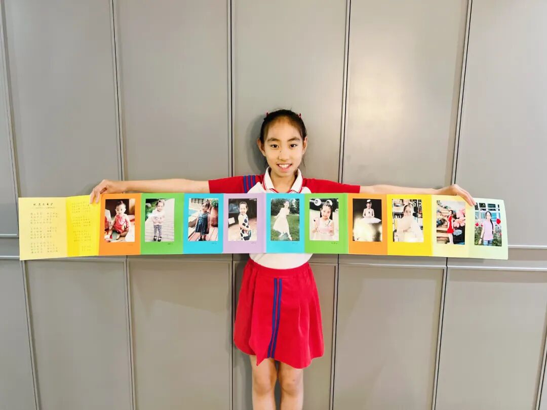 三年级10班 韦一今年是你的第十个六一儿童节,恰逢毛主席为育校题词“好好学习好好学习”70周年,我们准备了一份特殊的礼物——一本照片书。妈妈提供照片,爸爸制作,爷爷题词,姥姥做配饰,全家参与共同制作了这份礼物。从2013年开始至2022年,一张张照片记录了成长的喜悦,也充满了对未来的期待。
