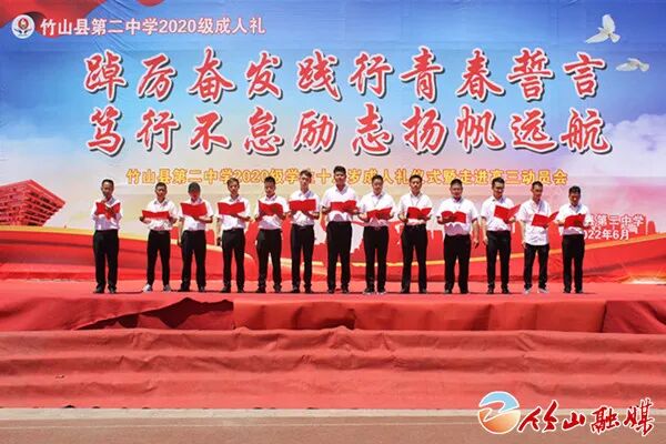 6月14日,竹山二中举行2020级学生18岁成人礼活动。红地毯、成人门、一张张洋溢着笑容的脸庞,把竹山二中装点得格外绚烂,近两千名师生共同见证这一庄严而又激动的时刻。