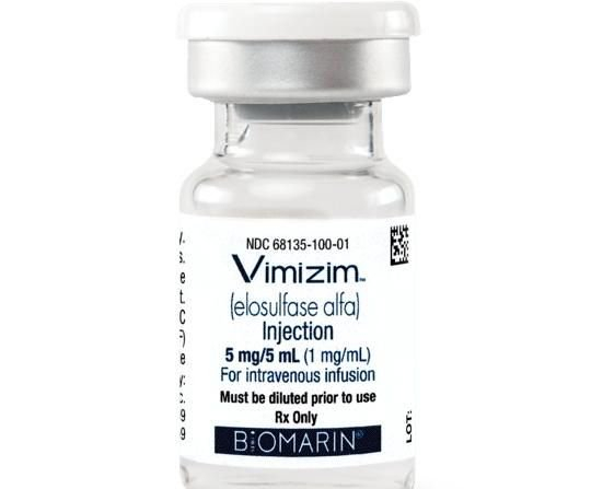 美国拜玛林制药公司(BioMarin Pharmaceutical)的Vimizim(中文商品名:唯铭赞)是目前全球唯一一款治疗儿童MPSⅣA型的药物,此药无法根治疾病,需要终身服药,但能延缓症状。