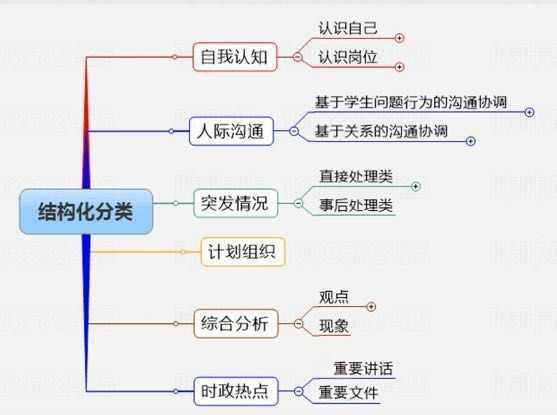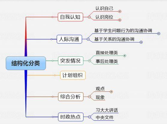 结构化:结构化题目共有6大类,分别为自我认知类题目、人际沟通类题目、突发情况类题目、计划组织类题目、综合分析类题目、时政热点类题目。其中,除了时政需要自己死记硬背,其他几种题型都有答题模板。对于结构化面试试题,没有统一的标准答案,考生只要在规定的时间内,紧扣题目,站在教师角度言之成理即可。