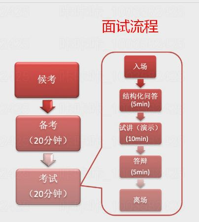2. 面试 主要从结构化、试讲、答辩三方面进行考察。