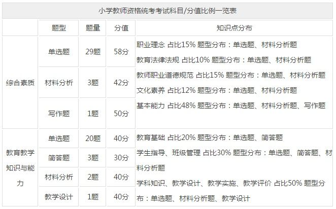 2)小学学段:科目一为《综合素质》(小学),科目二为《教育教学知识与能力》。