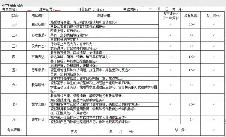 教资面试流程图3、面试的评分细则