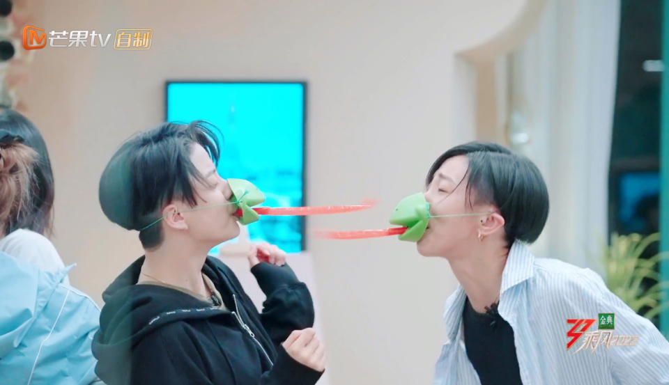 第四个很逗的画面,是Amber组她们用玩具相互吐舌头,越幼稚越有趣。
